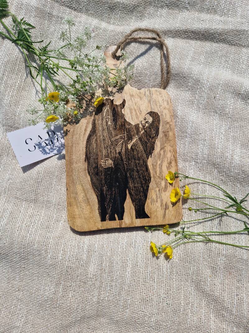 Scan een handgeschreven tekst of tekening (bijvoorbeeld van een kind) en laat deze graveren. Dit geeft de plank een persoonlijke, emotionele waarde.